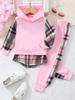 Roupa de inverno transfronteiriça nova para meninas, suéter de manga comprida com capuz, retalhos xadrez e calça, primeira geração de cabelo