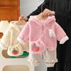 Conjunto de Veludo Infantil para Inverno 2025 Inverno Novo Terno Infantil Conjunto de Duas Peças 1-5 Anos Meninas Roupa de Inverno com Capuz