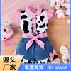 Amazon Verão Crianças Gola Reversível Xadrez Manga Morcego Estampa de Vaca Top Shorts Jeans Patchwork Conjunto Meninas