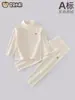 Conjunto de Roupa Térmica para Bebê Gola Alta Cintura Alta Espessado Vermelho Inverno Infantil Aquecimento Crianças Derong Camadas Térmicas Superior e Inferior