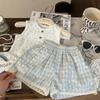 Roupa Infantil Estilo Coreano 2026 Novo Conjunto de Verão Duas Peças para Meninas: Colete Floral e Shorts Xadrez com Renda Elegantes Tendência
