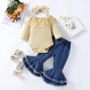 Conjunto de Moda Infantil Samgamibaby para Primavera e Outono para Meninas, Macacão de Renda Ombro a Ombro com Calça Flare Jeans