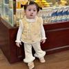 Colete Matelassê Feminino Outono/Inverno com Calça de Barra Larga Estilosa, Vestido de Primeiro Aniversário para Menina Pequena, Roupa de Ano Novo Estilo Tang