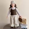 Roupa de Outono para Meninas 2025 Nova Moda Regata Infantil Conjunto de Três Peças Camiseta Básica de Algodão Puro de Outono para Menina