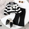 Shein Conjunto Europeu e Americano de Meninas Transfronteiriço Outono Novo Moletom de Manga Longa Listrado Calça Tricô Conjunto de Duas Peças