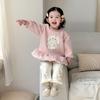 Conjunto de Moletom Espesso com Forro de Lã Novo Estilo de Inverno Dianxi para Bebês e Crianças Pequenas Meninas, Conjunto de Duas Peças com Blusa Patchwork de Desenho Animado e Calça