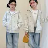 Pudding Haru Casaco de menina 2025 Primavera Novo Três-prova Com Capuz Jaqueta de carga Infantil All-match Jaqueta de cor sólida
