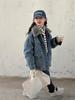 Flor e Busca K-Style 2024 Novo Inverno Meninas Gola de Pele de Coelho Jaqueta Jeans Média e Grande Infantil Jaqueta Forrada de Pele Moderna
