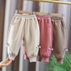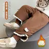 Suporte a personalização~ Calça pantalona de fleece infantil, estilo outono e inverno, versão coreana, estilosa, versátil, para bebê, com fleece adicionado, calça longa quente