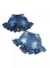 Shorts jeans infantis de verão, estilo coreano, com detalhe de orelha de madeira e camada dupla, shorts de renda fofos para meninas.