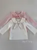 2025 Camada de Base Versátil de Manga Longa com Laço Novo Estilo Primavera/Outono Acabamento com Babados Camiseta Simples Elegante para Bebês Meninas