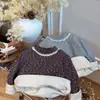 Camiseta básica de outono e inverno para meninas, bebê, moda infantil, personalidade, marca da moda, floral pastoral, top com acabamento em renda espessa