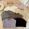 Outono Bebê Renda Gola Babado Camiseta Básica Princesa Bebê Manga Longa Camiseta Top para Meninas Moda Roupa Íntima Feminina