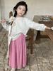 Qiaoyu Roupa Infantil Camiseta Básica para Meninas Primavera & Outono 25 Nova Roupa Infantil para Bebê Menina Cor Pura Estilo Pequena Pérola Top Estilo Coreano