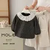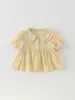 INS Venda Quente Camisa Infantil de Algodão e Linho com Bolinhas, Gola de Boneca, Estilo Artístico, Top Fino para Crianças Pequenas e Médias, Bebê Menina 0-6 Anos