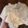 Camiseta Infantil e para Crianças Pequenas 2025 Outono Novo Estilo Bebê Menina Bordada Gola Folha de Lótus Camiseta Básica Top Branco Estilo Versátil
