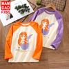 Suéter de manga comprida para meninas, primavera e outono, camisa básica, novo desenho animado, estilo ocidental, camiseta infantil, primavera e outono, top popular, tudo combinando, moderno