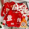 Suéter forrado de lã das crianças Ano Novo cumprimentando roupas masculinas outono e inverno engrossado quente manga comprida meninas camiseta de roupas infantis atacado
