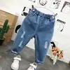 Calça Jeans Rasgada Infantil Primavera e Outono Roupa Infantil Coreana 2-7 Anos Calça Solta Infantil 5 Jeans da Moda para Meninos