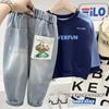 Roupas Infantis Estilo Coreano de Primavera Nova 2026 Calças Jogger Casuais Infantis Jeans Bordados Estilosos para Meninos