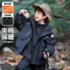 Roupas Camufladas Populares para Meninos no Aliexpress, Jaqueta Corta-vento à Prova d'Água e à Prova de Vento de Veludo para Crianças Tamanho Médio e Grande, Jaqueta Top para Roupas Infantis