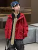 Jaqueta Masculina Acolchoada de Algodão para Outono e Inverno Cor Vermelha Ancora Combinação de Cores Jaqueta Engrossada Novo Estilo 2025 para Meninas, Crianças de Tamanho Médio e Grande