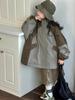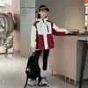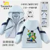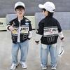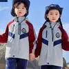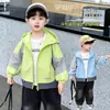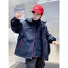 Outono 2025 Roupas Infantis Novas Jaquetas Infantis Estilo Masculino e Infantil Grande Jaquetas com Capuz Cor Contrastante Jaquetas Estilo Trabalho