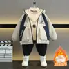 Jaqueta Corta-Vento Outdoor Detachável Três-Em-Um para Meninos Outono e Inverno 2025 Novo Estilo Forrada com Lã