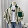 Jaqueta Casual Listrada Colorida de Contraste Nova para Meninos Primavera e Outono Camisa Tendência Estilo Coreano 3-6 Anos
