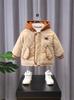 [Tecido Três Provas] Jaqueta de Veludo para Meninos, Nova Jaqueta Acolchoada de Inverno para Crianças Pequenas e Médias, Jaqueta de Algodão Quente Espessada