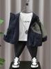 Roupa de Primavera para Meninos 2026 Nova Roupa Infantil Primavera e Outono Jaqueta Falsa de Duas Peças Conjunto de Duas Peças Estiloso e Fashion