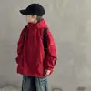 Jaqueta de Outono para Meninos com Capuz, Blusa à Prova de Vento, Novo Estilo 2025, Versão Coreana da Moda, Roupas Modernas de Caimento Solto para Crianças Maiores