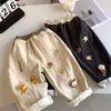 Calças infantis forradas com lã polar! Calças Casuais Quentes de Inverno para Meninos com Bordado de Desenho Animado da Moda