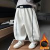 Calças Estilosas com Forro de Fleece para Meninos Engrossadas para Aquecimento Novo 2025 Calças de Inverno Integradas com Fleece Calças de Moletom Estilo Coreano para Meninos