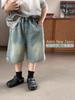 Shorts Jeans de Verão para Meninos e Meninas Estilo Coreano Moderno Soltos de Cinco Pontos com Bolsos Grandes para Crianças