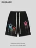 Shorts Estampados com Estrelas Estilo Retrô Americano para Meninos e Meninas, Novo Verão de Caimento Solto para Crianças Maiores, Shorts na Altura do Joelho, Calça Esportiva de Estudante