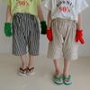 Calça Comprida Média 56 Pontos Infantil Coreana 2026 Novo Verão Listrada Verticalmente Calça Harem Casual para Meninos e Meninas Tendência