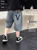 Roupa Infantil Shorts Jeans para Menino Verão Fino 2025 Novos Calças Capri Infantis Vestido de Verão para Crianças Grandes Calças para Meninos