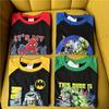 Roupas infantis de comércio exterior 2024 outono nova série de heróis de desenho animado cor combinando manga comprida base camisa casual costas também impressas