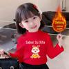 2023 Outono e Inverno Novo Ano Novo Infantil Roupas Fofas Coelho Vermelho Camiseta de Ano Novo Camisa Básica Casual Versátil Moderna
