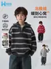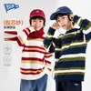 Conto de Fadas Memória Outono Novo Estilo Coreano Suéter Solto Meninos Médio e Grande Suéter de Algodão Listrado Manga Longa Falso Duas Peças