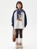 Moletom Raglan Cartoon Cinza e Azul Contrastante Outono e Inverno Comprimento Médio Veludo Moda Casual para Meninas e Meninos