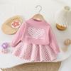 Colete de Tricô para Meninas Primavera e Outono 2025 Retrô Trançado Infantil Estiloso Colete Cardigan Saia Plissada Versátil Tendência