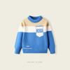 Gola redonda floral contraste cor camisola infantil menino outono e inverno casaco engrossado top quente pequeno, médio e grande camisa de base de malha infantil
