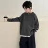 Suéter de Outono e Inverno para Meninos Falso Duas Peças Tricô Espesso Infantil 2025 Novo Estilo para Crianças Mais Velhas Moda de Inverno