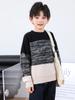 Outono e Inverno Novo Estilo Casual para Meninos Tricô Elk Contrastante Jacquard de Camada Dupla Gola Redonda Pulôver Tricô para Casual Diário