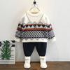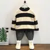 Suéter masculino outono e inverno 2023 engrossado novo suéter infantil de malha listrado bebê fundo quente Maillard