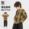 Suéter Infantil Duoduo Inverno 2025 Geométrico Diamante Gola Redonda Para Meninos Suéter Macio Waxy Crianças de Tamanho Médio e Grande Top de Cor Contrastante