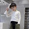 Camisa Básica Masculina de Veludo Gola Semi-alta Inverno 2024 Nova Camiseta Infantil Quente de Manga Longa