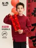 Roupas Infantis Zuoxi Suéter Vermelho para Meninos Pulôver Suéter de Tricô Torcido Espessado 2025 Nova Roupa de Ano Novo para Meninos